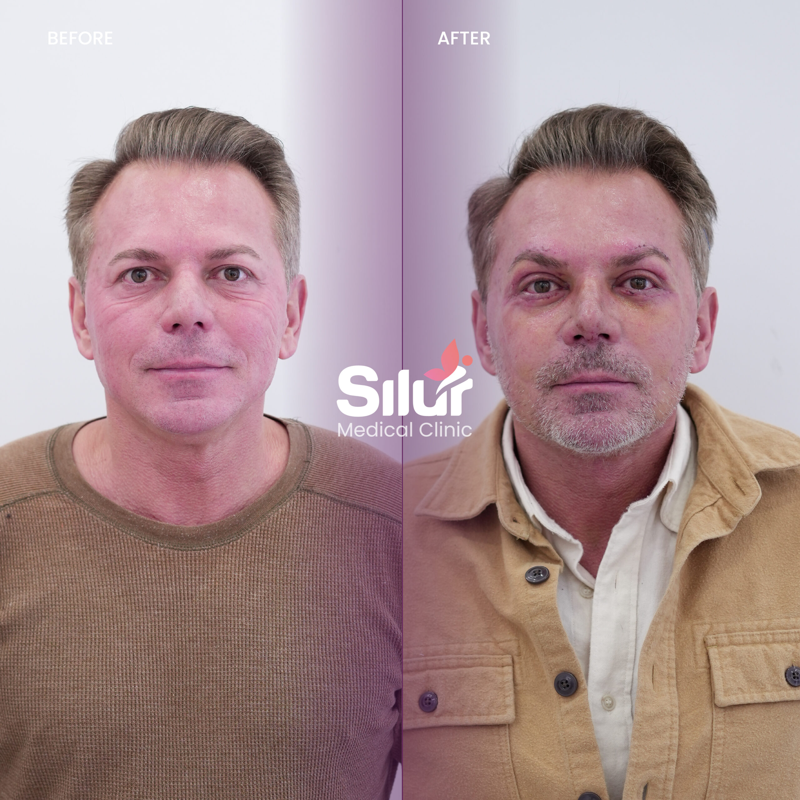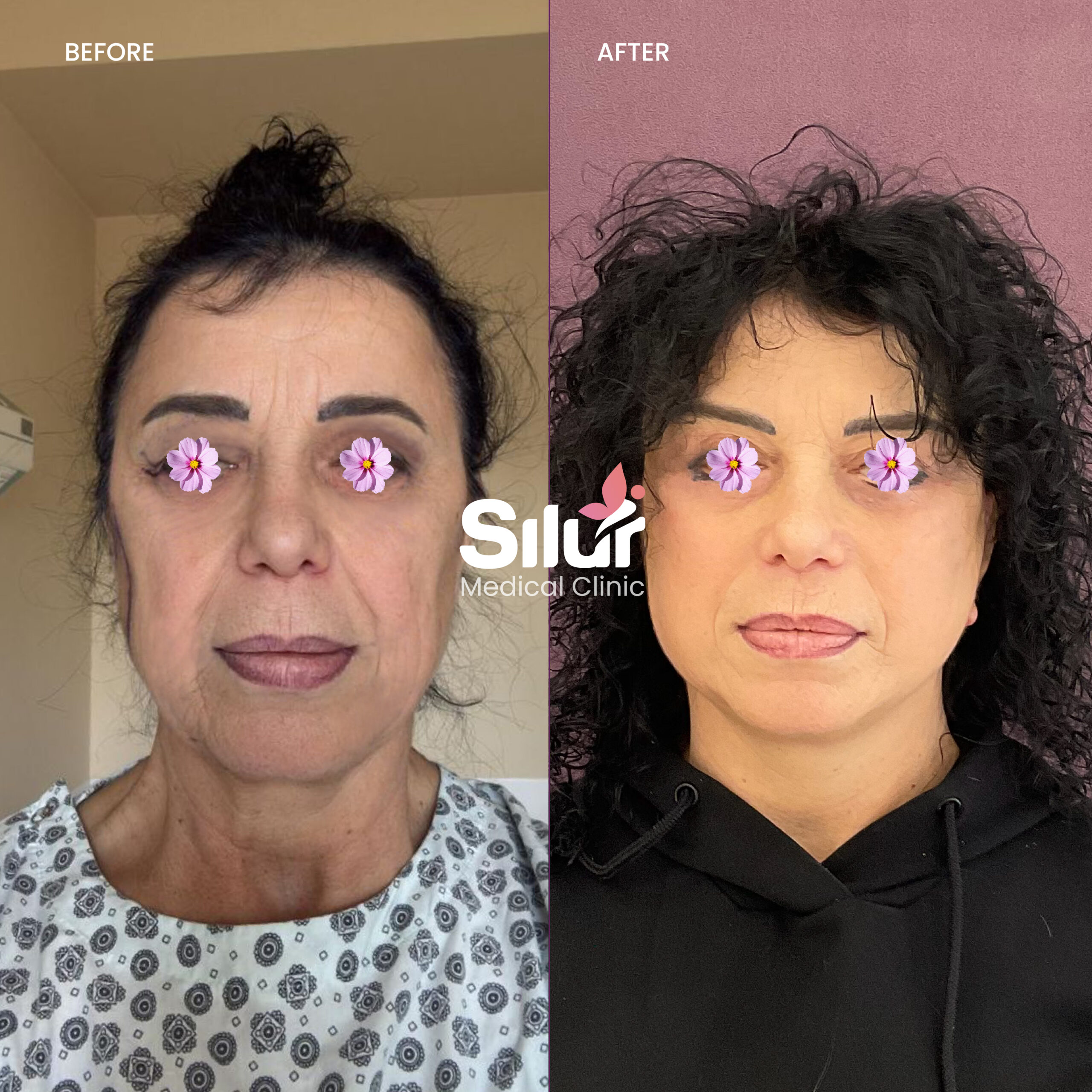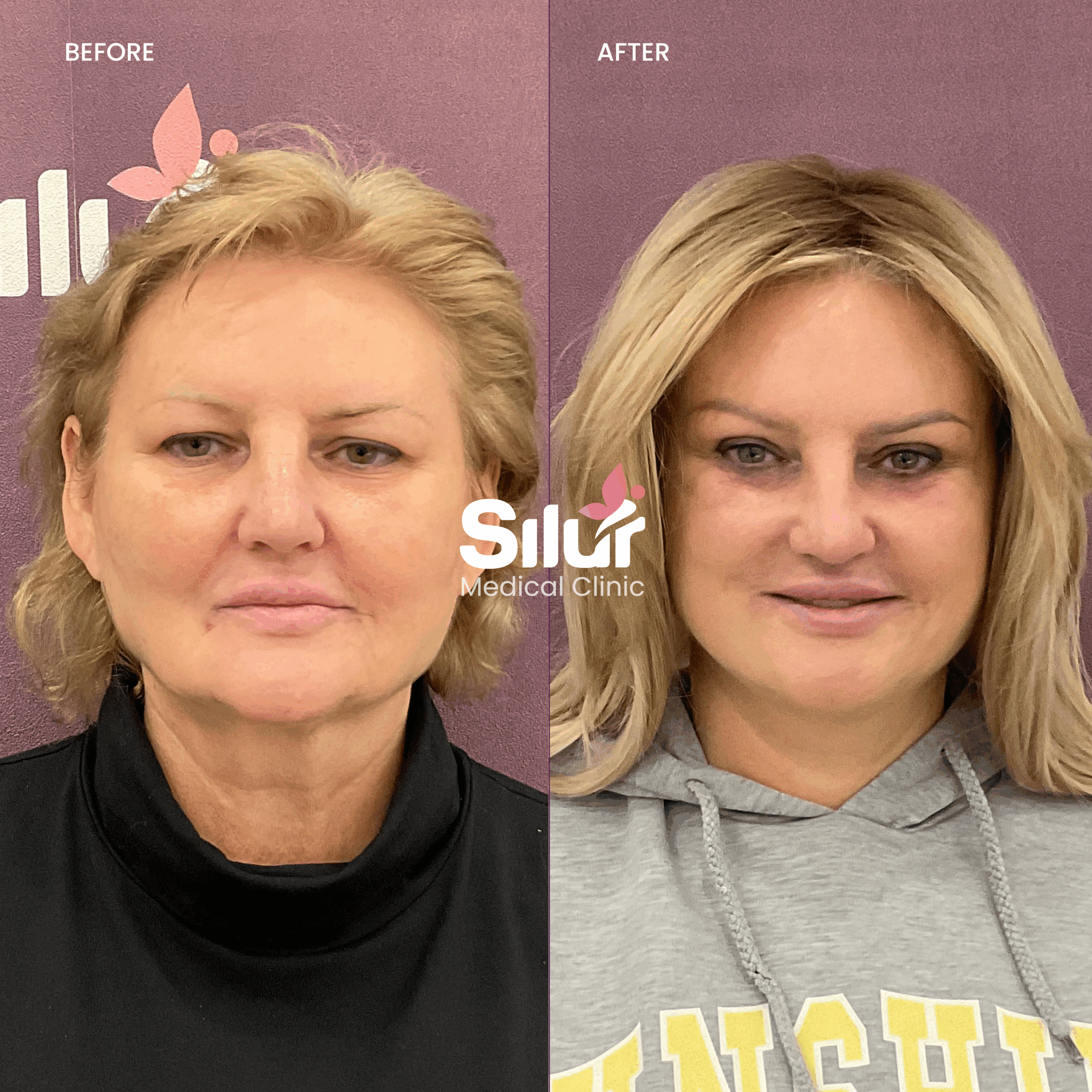 Recovery after a full face lift requires time and proper care to achieve optimal results. Patients may experience swelling, bruising, and tightness during the first 1–2 weeks. A light dressing or supportive bandage is typically worn for the first days, and stitches are usually removed after 7–10 days. Most patients return to social and professional activities within 2–3 weeks, although strenuous exercise should be avoided for 4–6 weeks. As healing progresses and swelling subsides, the final results reveal a smoother, firmer, and more youthful face with natural contours. At Silur Clinic, we provide detailed aftercare guidance and ongoing follow-up to ensure safe healing and long-lasting rejuvenation.