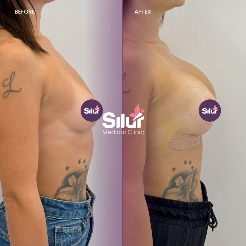 Recovery varies depending on the type of mammoplasty. Patients may experience mild swelling, bruising, and discomfort in the first days. A supportive surgical bra is usually worn for 4–6 weeks to aid healing and maintain breast shape. Most patients return to light daily activities within 1–2 weeks, while strenuous activity and heavy lifting should be avoided for 4–6 weeks. As swelling subsides, final results reveal balanced, natural-looking breasts. At Silur Clinic, we provide detailed aftercare guidance and continuous follow-up to ensure safe healing and long-lasting results.