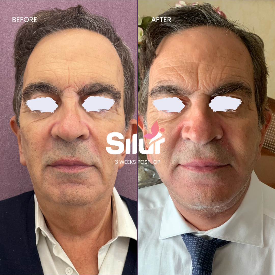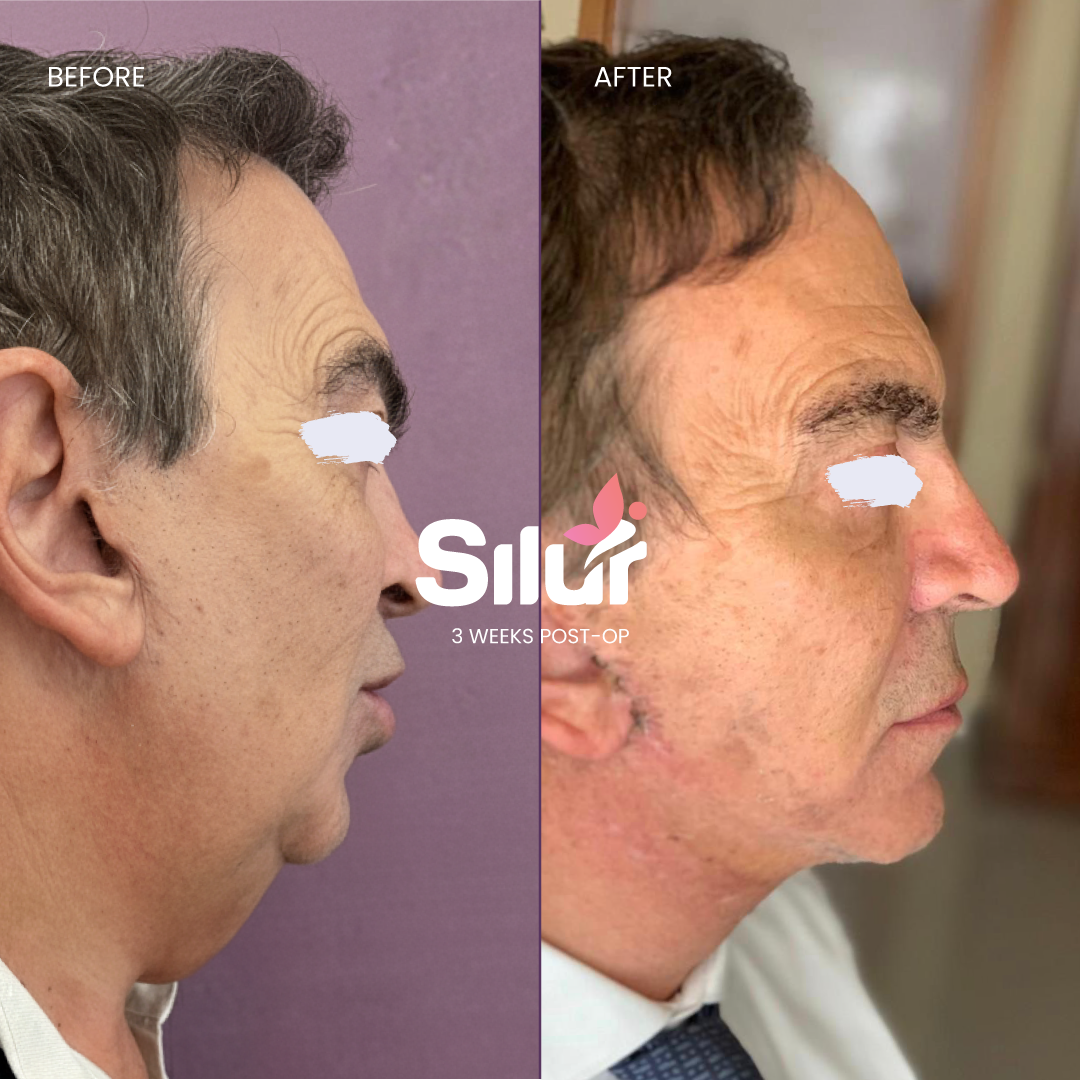 At Silur Clinic, a neck lift is performed under general anesthesia and usually lasts 2 to 3 hours. Depending on the patient’s needs, the procedure may involve platysmaplasty (tightening the neck muscles), cervicoplasty (removing excess skin), and liposuction (to eliminate fat deposits under the chin or along the jawline). Small incisions are discreetly placed around the ears and sometimes under the chin, ensuring scars remain well-hidden. This approach provides long-lasting results with a naturally rejuvenated appearance.